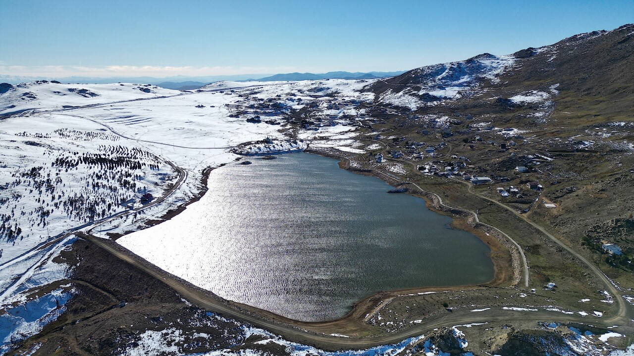 Karla kaplanan 3 bin rakımlı yaylalar dronla görüntülendi.