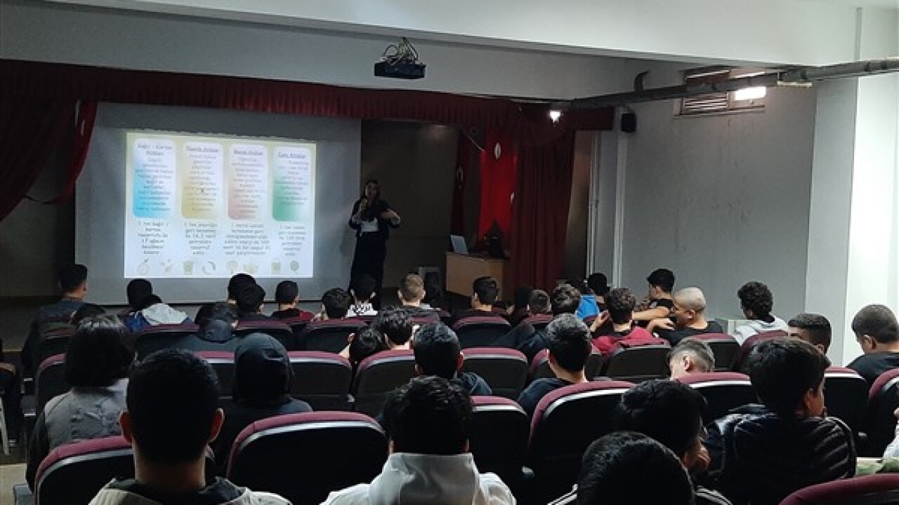 Son olarak Rıfat Canayakın Anadolu İmam Hatip Lisesi’nde verilen eğitimde geri dönüşümün önemi, çöp olarak bilinen atıkların geri dönüşüm sayesinde tekrar kullanılabilir hale getirildiği, dönüşümün ülke ekonomisine katkısı ve atıkların nasıl toplanması gerektiği sunum eşliğinde öğrencilere tek tek anlatıldı.