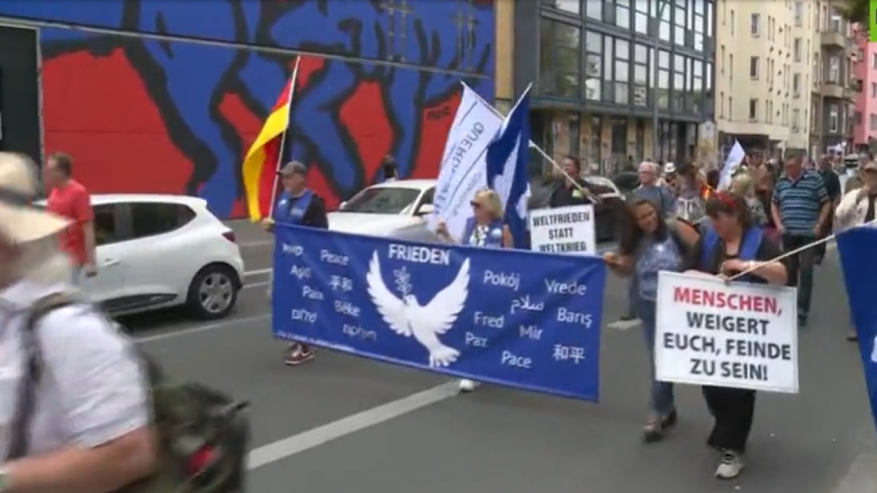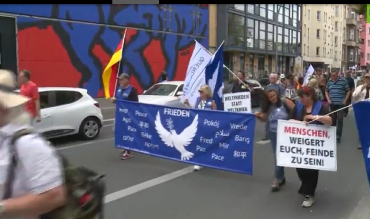 Birçok kişi üzerinde beyaz barış güvercini bulunan mavi bayraklar taşırken, "Topraklarımızda ABD füzelerine hayır" yazılı pankart ve dövizler vardı: "Topraklarımızda ABD füzelerine hayır!" "Rusya'ya karşı füzelere hayır!" "Ukrayna ve İsrail'e silah sevkiyatına hayır!" ya da "Barış görüşmeleri!" pankartlarını taşıdılar.