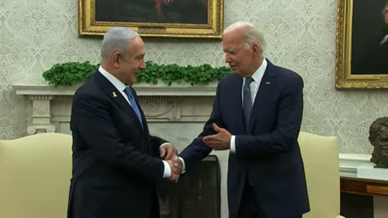 Netanyahu'yu Oval Ofis'te karşılayan Biden “Konuşacak çok şeyimiz var” dedi. Netanyahu görüşmenin başında Biden'a “Gururlu bir Yahudi Siyonistten gururlu bir İrlandalı-Amerikalı Siyoniste, 50 yıllık kamu hizmeti ve İsrail devletine 50 yıllık desteğiniz için size teşekkür etmek istiyorum” dedi.