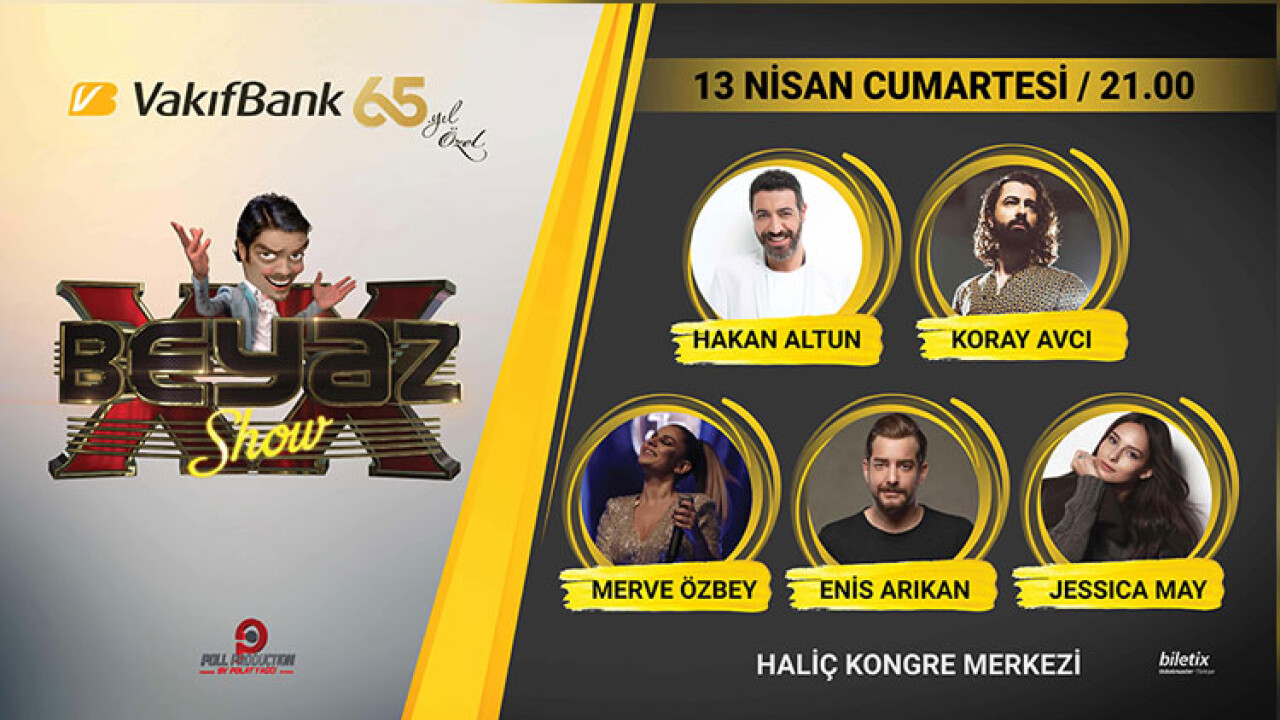 Poll Production organizasyonu Vakıfbank sponsorluğunda gerçekleşecek olan Beyaz Show 13-14 Nisan'da Haliç Kongre Merkezi'nde izleyicisiyle buluşuyor. Beyaz Show sevenlerinin yoğun ilgi gösterdiği etkinliğin ilk günkü biletleri günler öncesinden tükenirken; ikinci güne ait sınırlı sayıda biletin satışı ise devam ediyor.