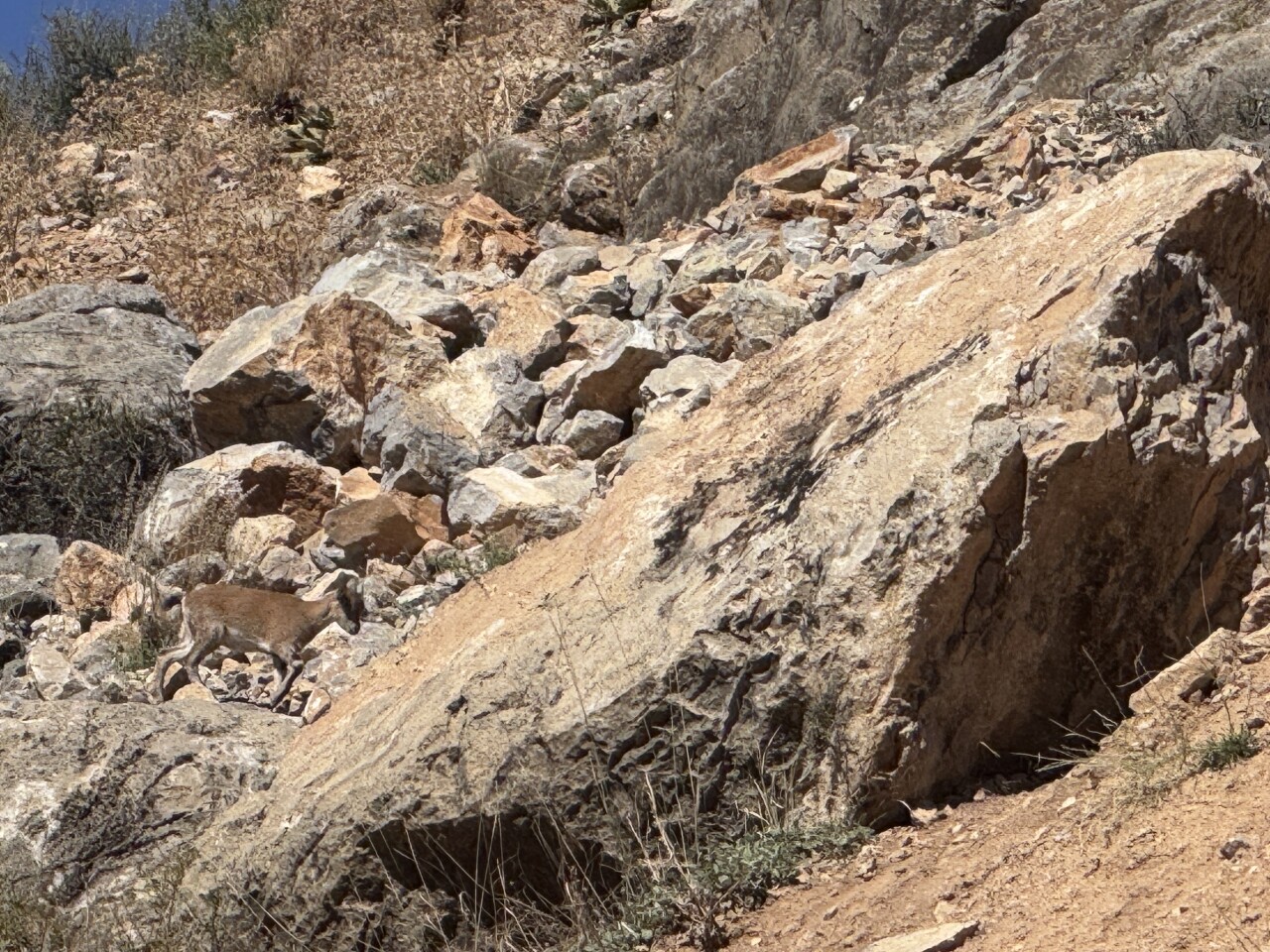 Yedisu-Erzincan kara yolunun Ziyaret mevkisinde kayalık yamaçlarda görüntülenen dağ keçileri, bir süre bölgede dolaştıktan sonra gözden kayboldu.