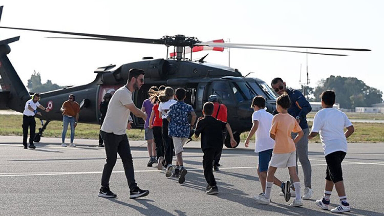 TEKNOFEST İzmir'de "Bir Çocuk Gelsin Bir Uçağa Dokunsun" projesi kapsamında çevre illerden gelen öğrenciler ilk kez helikopterle uçuş deneyimi yaşadı. Helikoptere binecek olmalarından habersiz olan bazı öğrencilerin büyük heyecan yaşadığı görüldü.