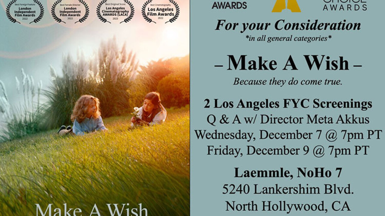 Bir Dilek Tut filmi Los Angeles açılış gösterimini 7 Aralık 2022 de gerçekleştiriyor. Filmin oyuncularından Mehmet Turan Doğan geçtiğimiz aylarda Los Angeles'ta En İyi Genç Oyuncu ödülü ile ülkemize dönmüştü.