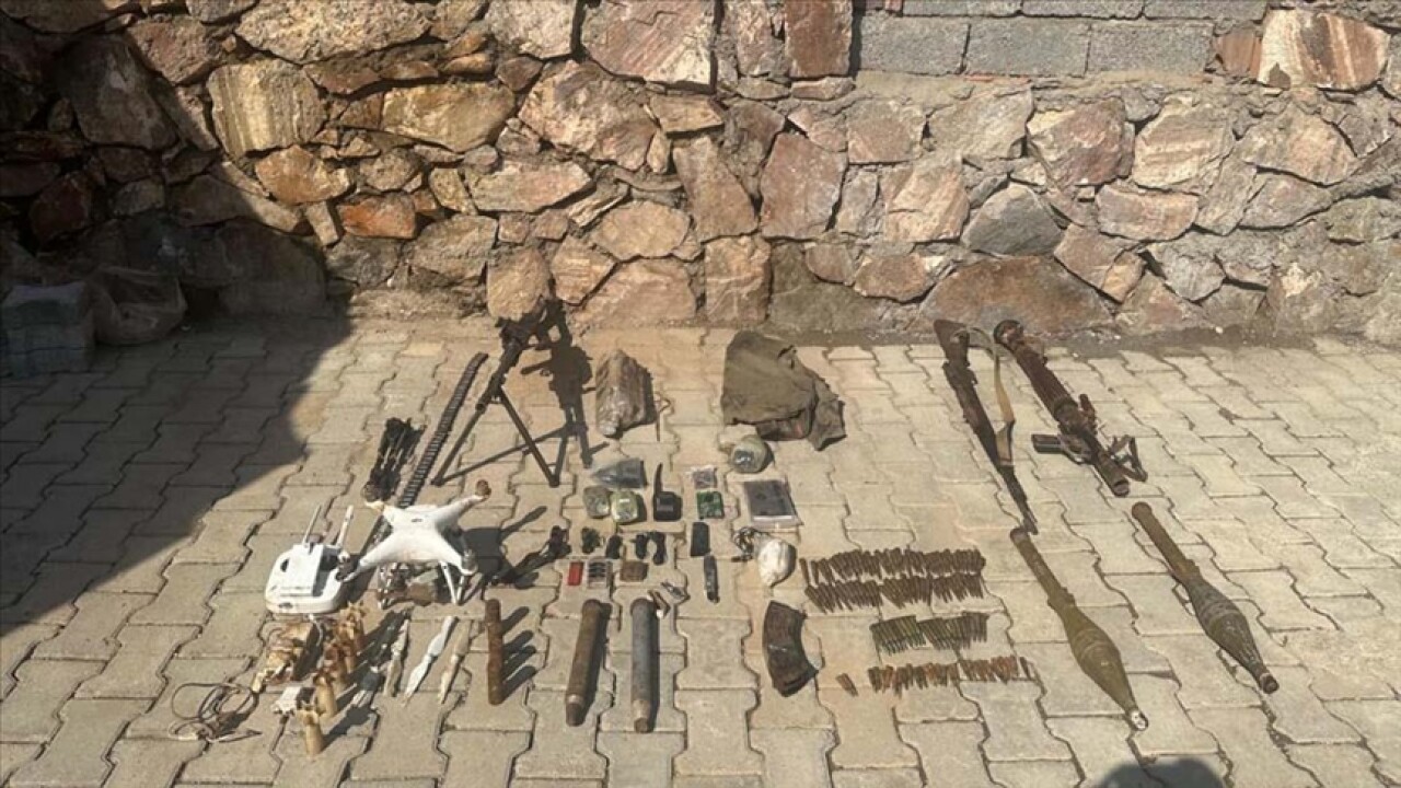 Bölgede yapılan aramada, RPG-7 roketatar silahı, 2 anti-tank mühimmatı, 2 anti-personel mühimmatı, 4 roket sevk fişeği, PKM makineli tüfek ve 30 mühimmatı, mavzer tüfek ve 16 mühimmatı, 2 kalaşnikof şarjörü, 30 kalaşnikof mühimmatı, dron, 4 dron dengeleyici aparat, drona monte edilen 5 havan tapası, yarım kilogram plastik patlayıcı, el yapımı patlayıcıda kullanılmak üzere hazırlanmış 6 uzaktan komutalı anahtar sistemi, Glock marka tabancaya ait şarjör, havya, 10 metre lehim teli, 5 şarj kablosu, 3 akü, gıda, mutfak ve yaşam malzemeleri bulundu.