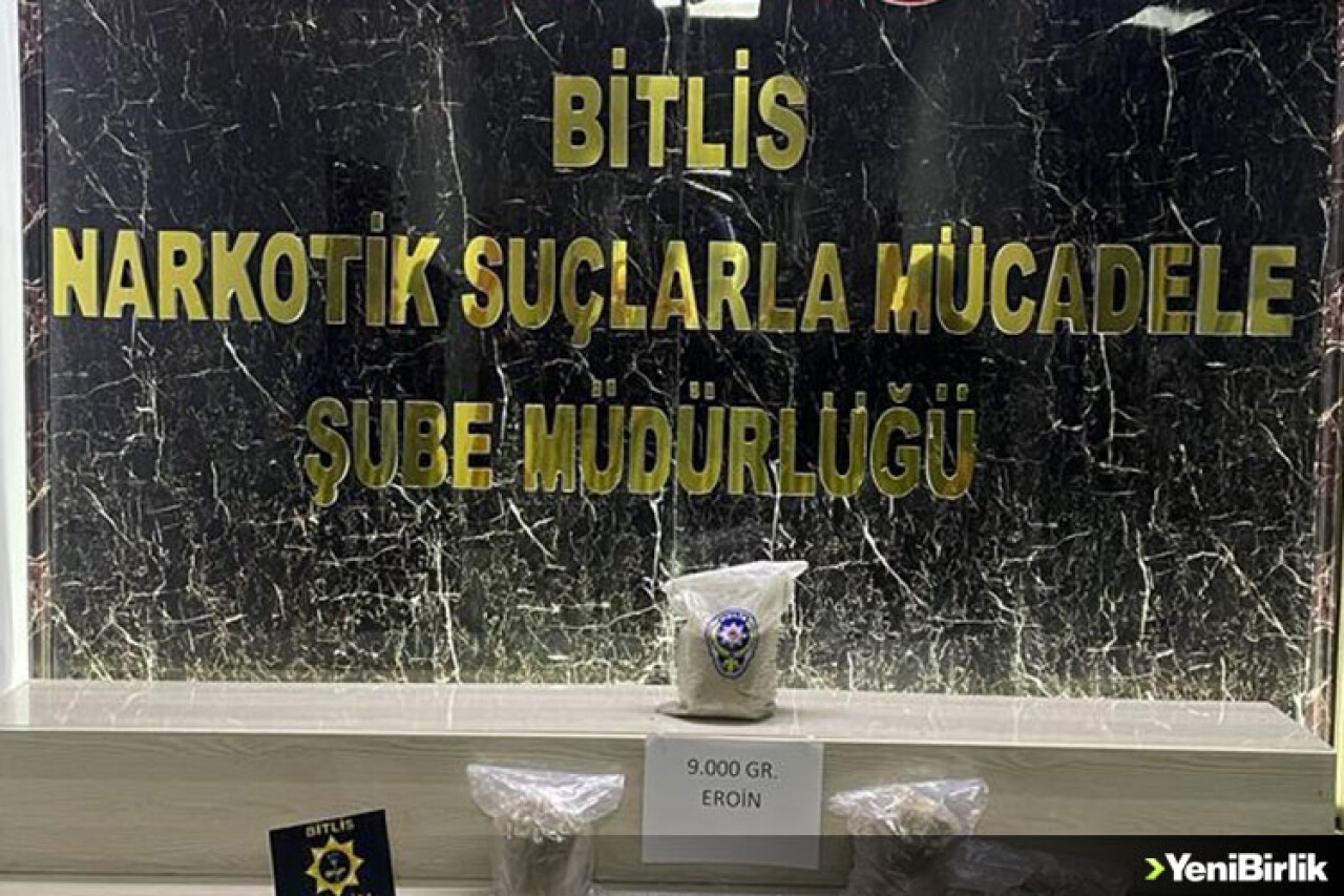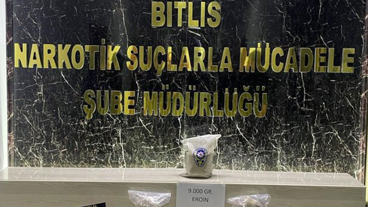 Bitlis'in Tatvan ilçesinde durdurulan otobüsteki yolcunun eşyaları arasında 9 kilogram eroin ele geçirildi.