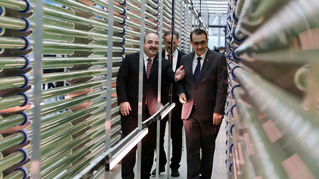 Dönmez, üretimde kullanılan yosunların karbon tutma özelliği olduğunu ifade ederek, "Yosunlar, bulundukları yerdeki havayı ve suyu temizleme özelliğine sahip. Bir nevi doğal hava temizleyici. Bu tesisimizi dünyadaki benzerlerinden ayıran önemli özelliği tam bu nokta. Tesisimiz Türkiye'nin ve Avrupa'nın ilk karbon-negatif entegre biyorafinerisi. Sadece enerjiyle sınırlı olmayacak buradaki üretim. Sağlık, gıda, tarım, hayvancılık ve çevre gibi sektörlerimiz için 11 farklı yosun tabanlı bir biyoekonomi modelini hayata geçireceğiz." diye konuştu.