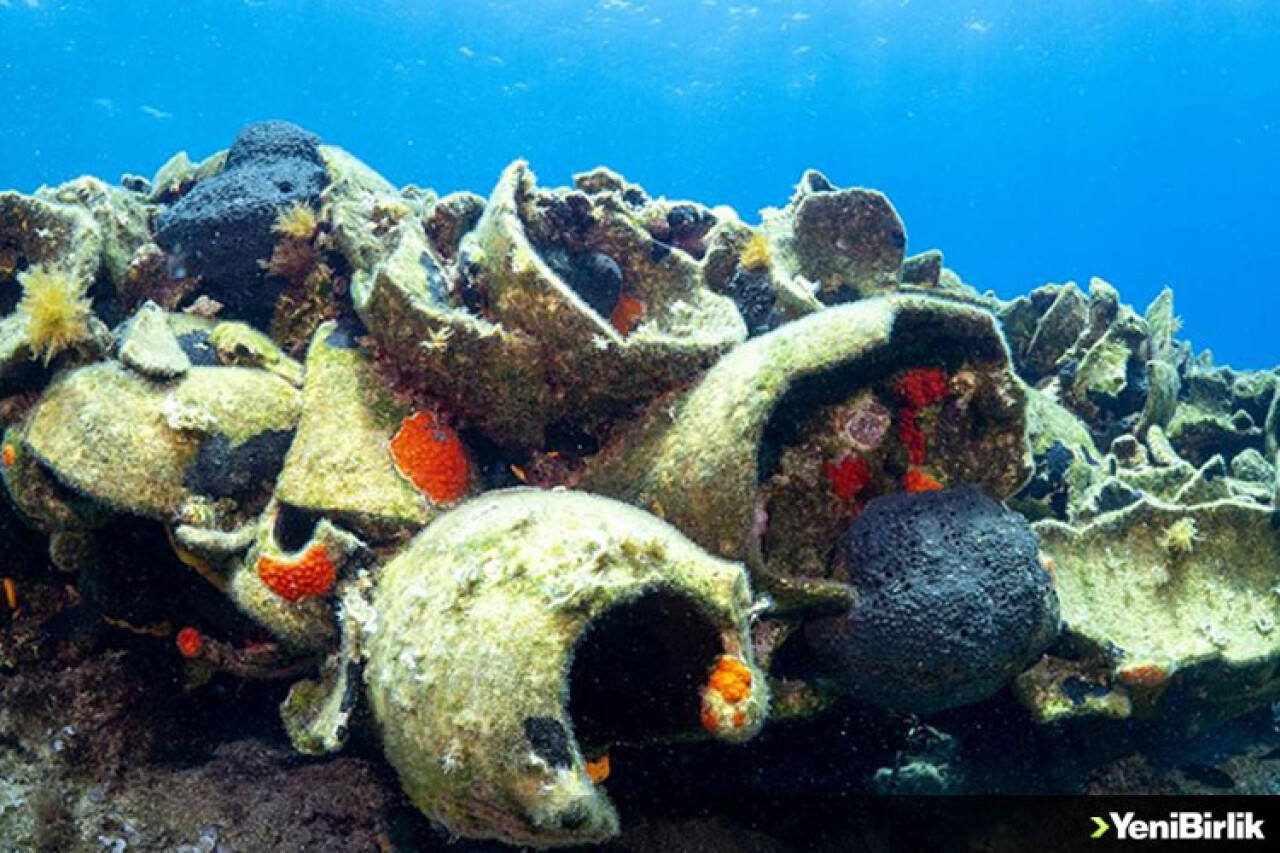 Muğla'nın Bodrum ilçesine bağlı Turgutreis açıklarındaki Yassıada'nın derinliklerinde bulunan batıklar görüntülendi.