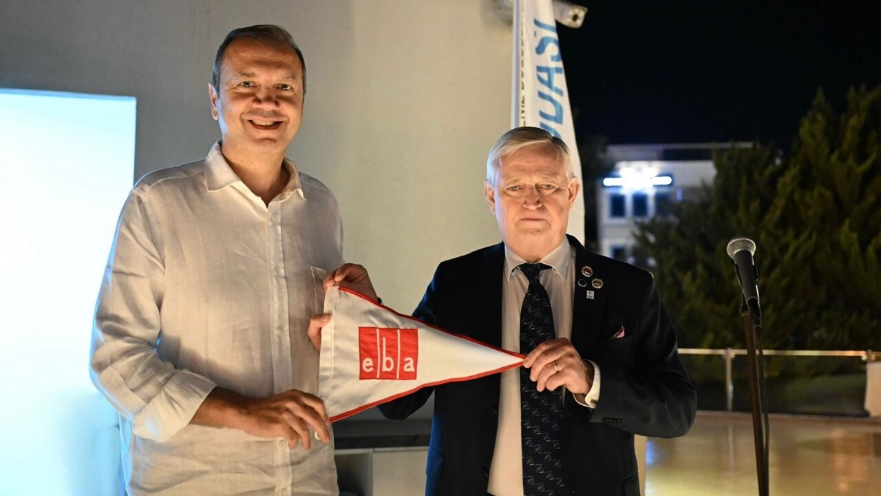 EBA Başkanı Jan Jansson, Kıran'a organizasyon için teşekkür ederek, EBA flamasını hediye etti.