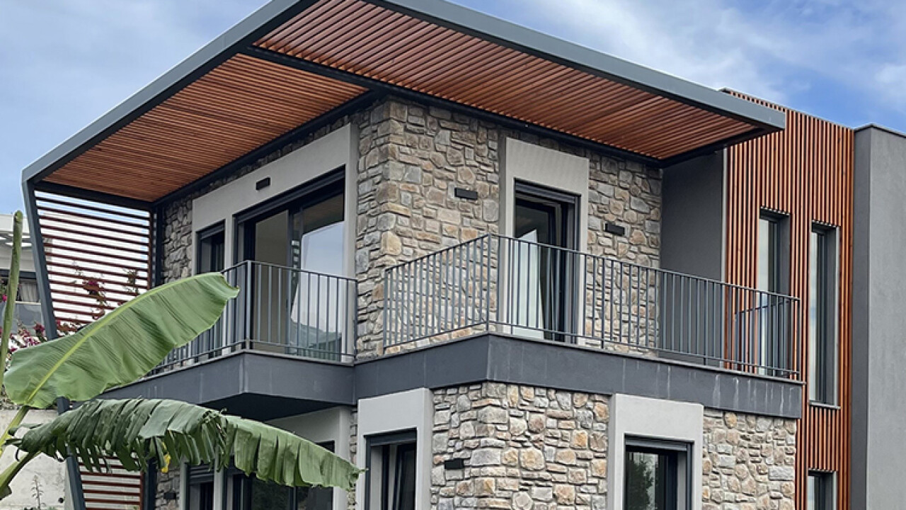 GOOA Architects’in doğal, sürdürülebilir ve yenilikçi malzemeleri çağdaş formlarla bir araya getirdiği Livadi Konacık Evleri’nde mahremiyet duygusunu korumak ve çağdaş tasarım algısını oluşturmak için üst katlardaki balkonlara, yukarıya çıkarken genişleyen ahşap ayırıcılar yerleştirilmiş. Yapının iç mekanlarında gün ışığından optimum düzeyde yararlanabilmek için cephedeki doğramalar geniş ebatlarda ve kayar sistem olacak şekilde tasarlanmış.