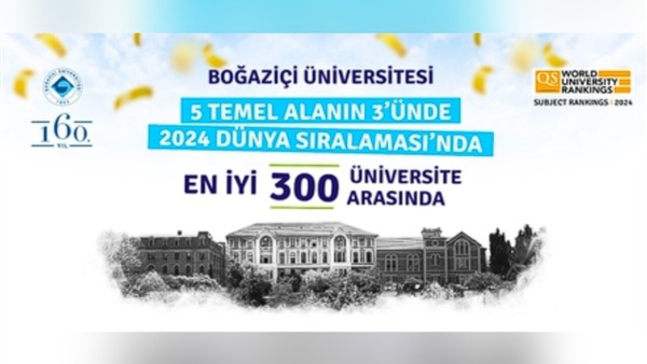 Boğaziçi Üniversitesi, QS’in 2024 Alanlarına Göre En İyi Üniversiteler Sıralaması’nda performansını önceki yıllara göre geliştirdi. Buna göre Boğaziçi Üniversitesi dünyada 5 temel alanın 3’ünde ilk 300’de yer alırken; 2 alt alanda ilk 150, 8 alt alanda ilk 250 ve 14 alt alanda ise ilk 400’de temsil edildi.