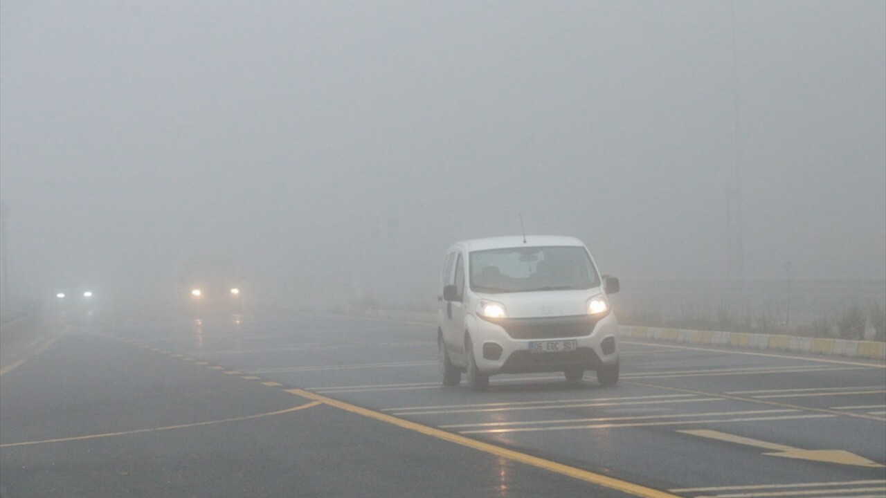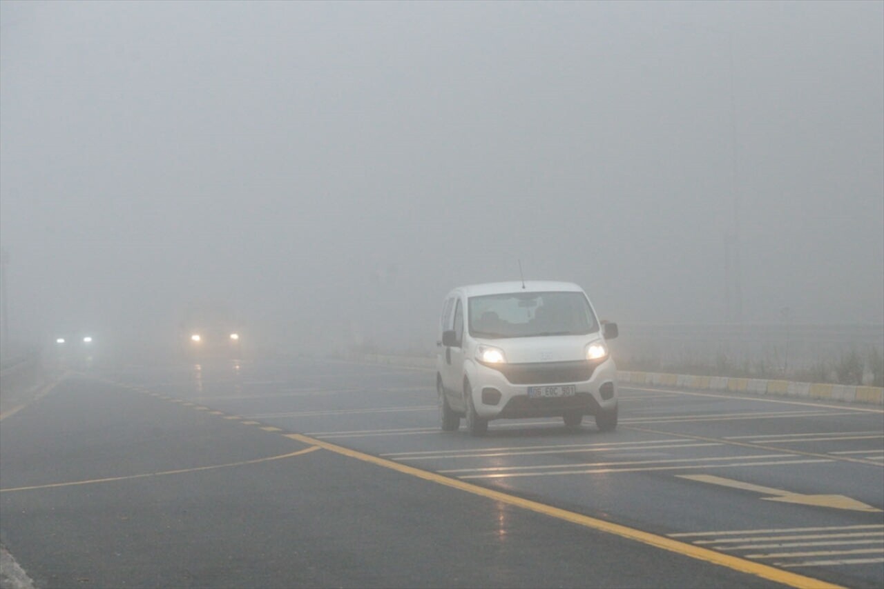 Sis nedeniyle görüş mesafesinin azaldığı güzergahtan geçen sürücüler, yolda dikkatli ilerledi.