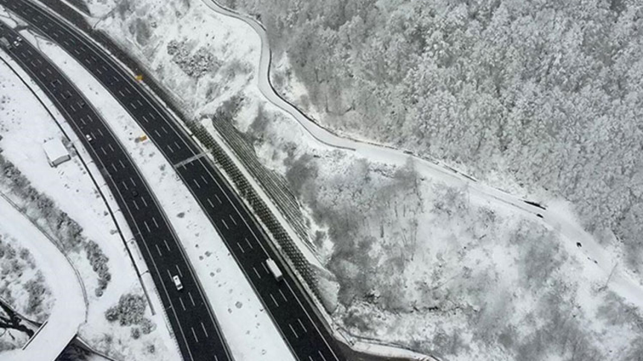 İki gündür süren yağış sonucu karla kaplanan Bolu Dağı, dronla görüntülendi.