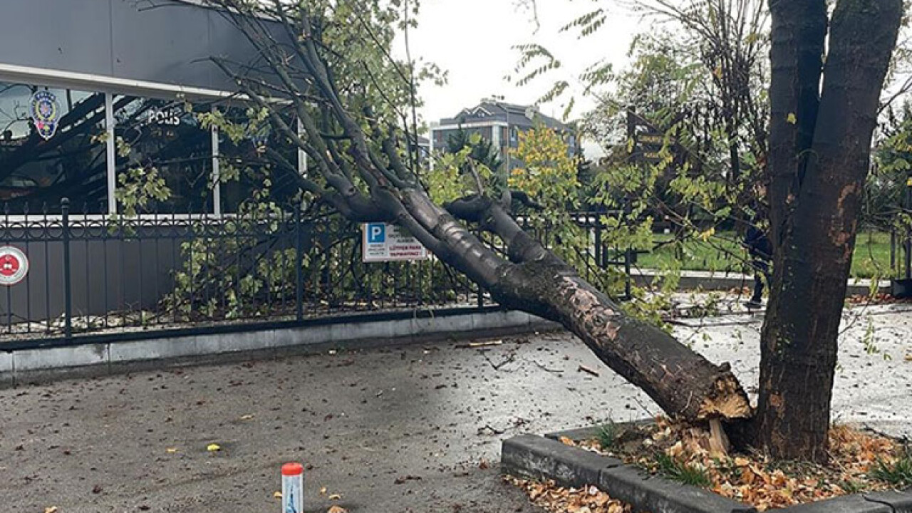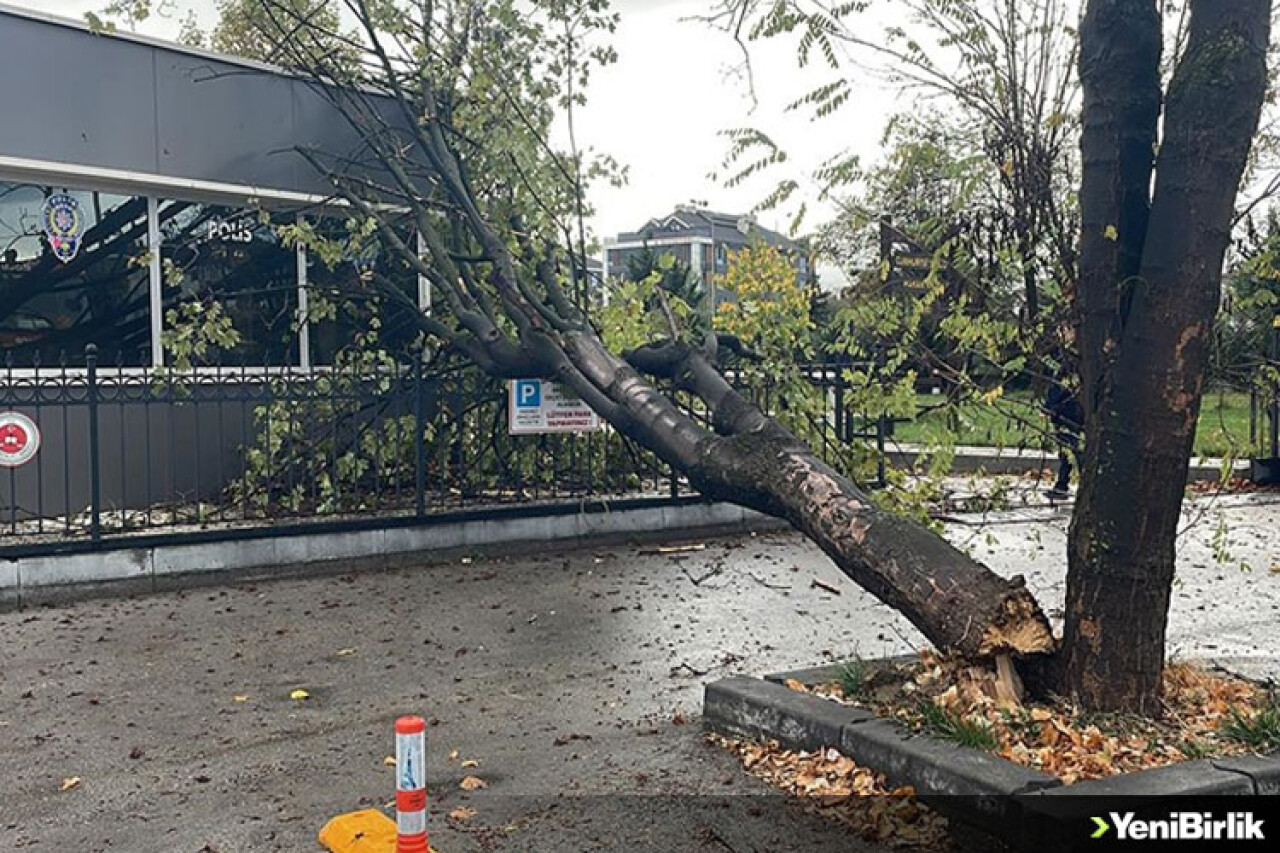 Aşağısoku Mahallesi'nde yer alan Bolu Adliyesi'nin giriş kapısı yakınındaki ağaç, rüzgarın etkisiyle dibinden kırılarak devrildi.