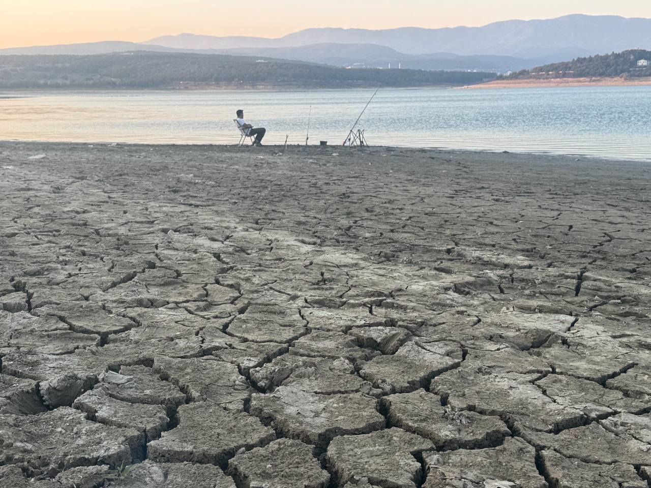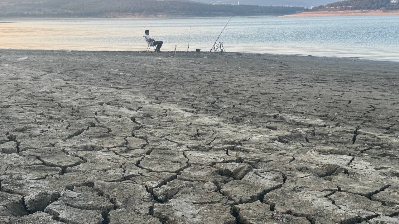 Suyun çekildiği yerlerde toprakta çatlaklar oluştu. Amatör balıkçılar, suyun azaldığı gölün kenarında balık tuttu.