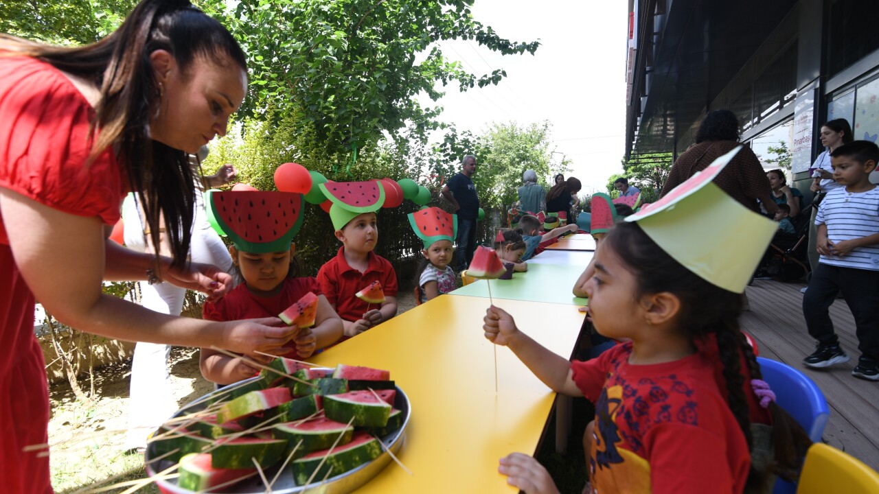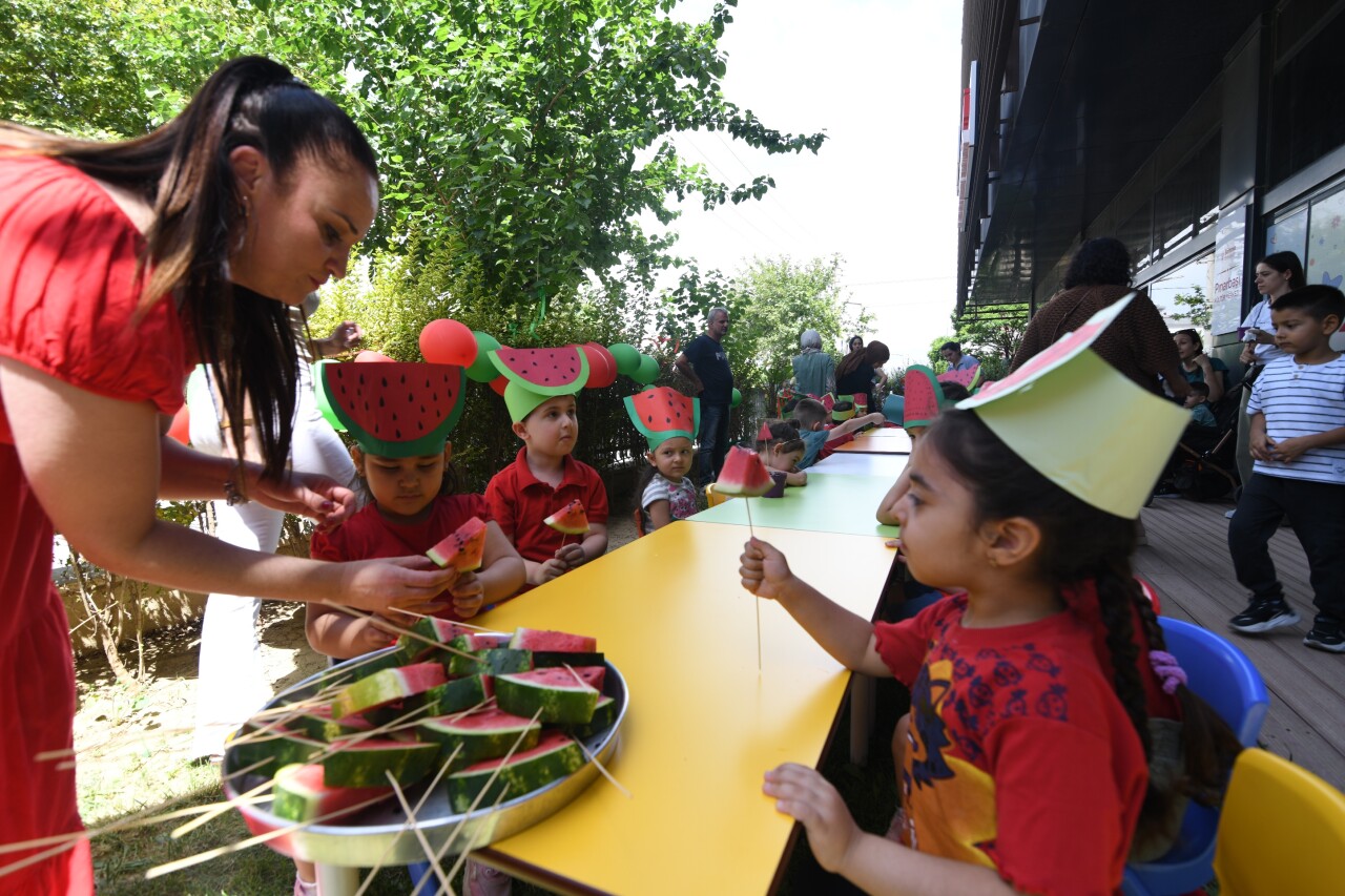 Çocuklar anneleriyle birlikte palyaço eşliğinde dans edip eğlenerek, çizim, boyama ve makas becerilerini geliştirecek çalışmalara katıldı. Sıcak havada bol bol karpuz yiyip karpuz suyu içen çocuklar, hazırlanan özel pastayı hep birlikte kesti. Ayrıca, çocuklar kendilerine verilen karpuz tohumlarını toprakla buluşturup cansuyu verdi.