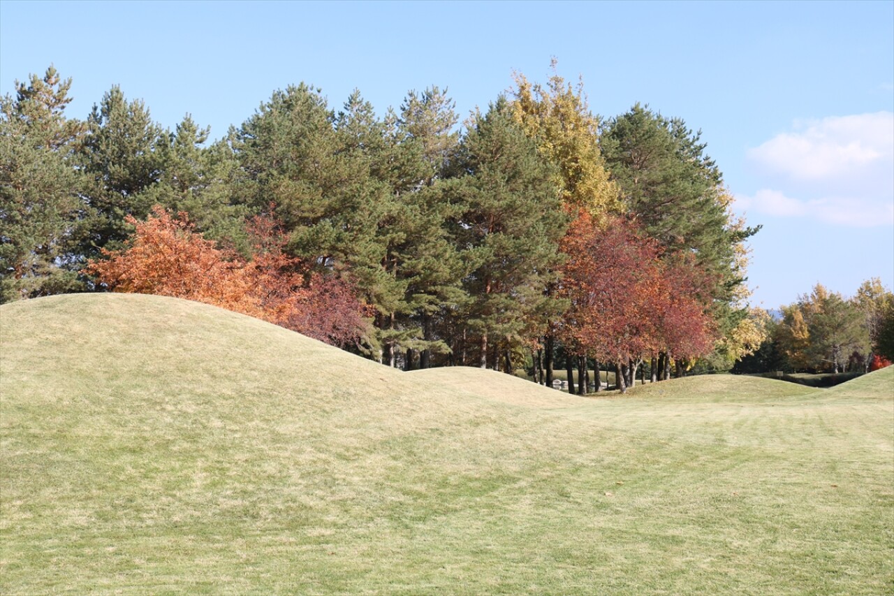Bahçede bulunan farklı türdeki ağaçlar ve bitkiler, sonbaharın renklerine bürünürken oluşturulan suni gölet, ağaçlar ve çeşitli bitkilerin farklı renklerde görüntüsü ziyaretçilerine ayrı güzellik sunuyor.
