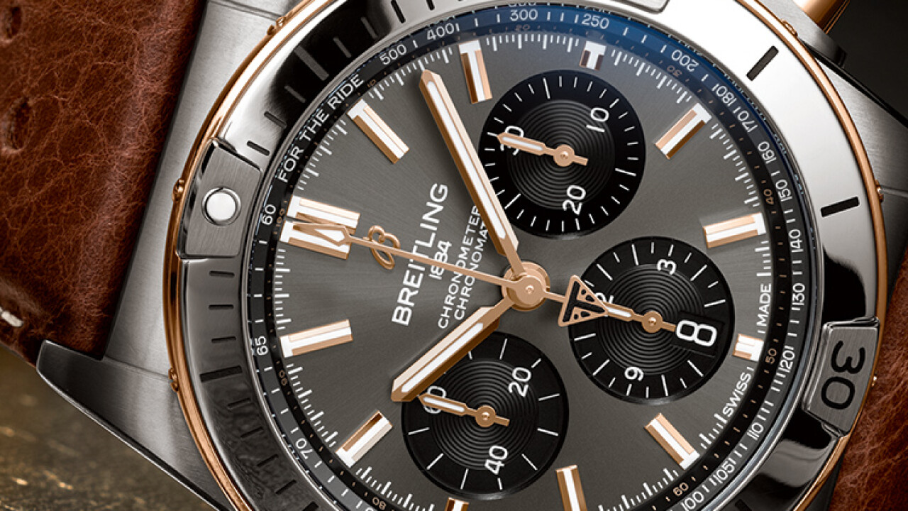 Titanyum ve 18 ayar kırmızı altın yeni Chronomat B01 Triumph modelleri motosikletin koyu tonlarını yansıtırken, saatlerin altın rengi detayları Speed Triple 1200 RR'nin sınıfının lideri Öhlins ön çatallarına saygı duruşunda bulunuyor.