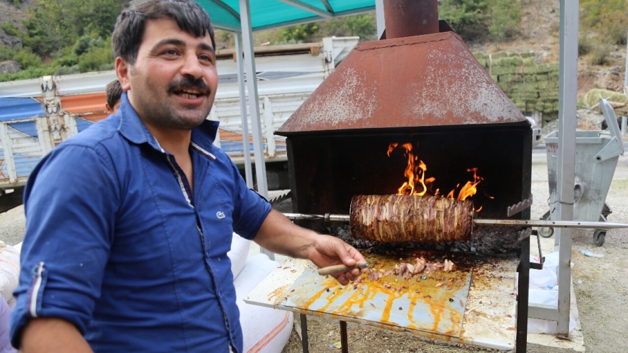 Ardanuç’tan Artvin Merkez’e beslediği hayvanları satmak için gelen Murat Demir isimli besici ise kurduğu cağ kebabı tezgahıyla hayvanlarının önce tadına baktırıyor, sonra satıyor. Demir, “Pazara toplam 8 tane tosun 40 tane küçükbaş hayvan getirdim. Ben burada önce tattırıyorum, daha sonra beğenmeyen almasın” şeklinde konuştu.