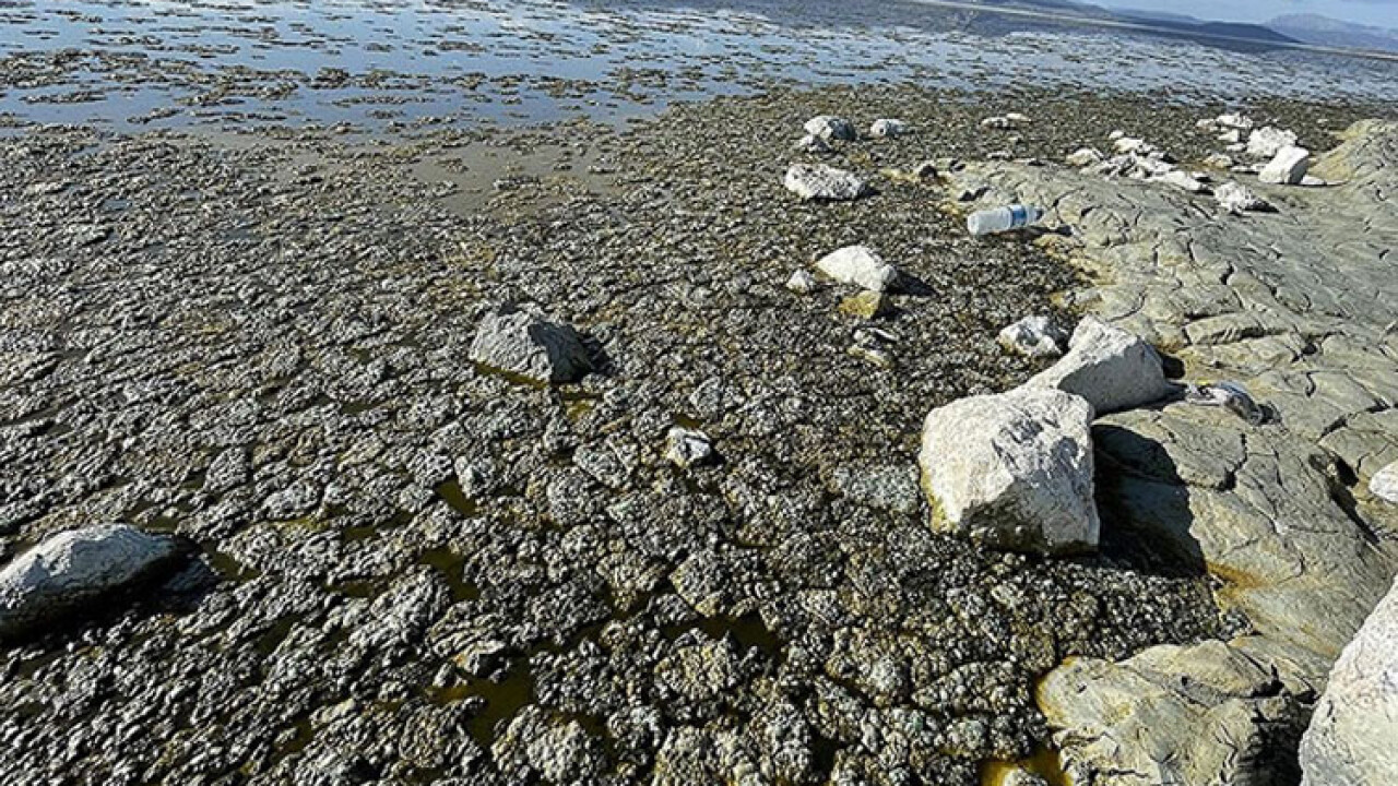 Suyun üzerinde görünür hale gelen alg patlaması Burdur Gölü'nde belirli dönemlerde açığa çıkıyor.