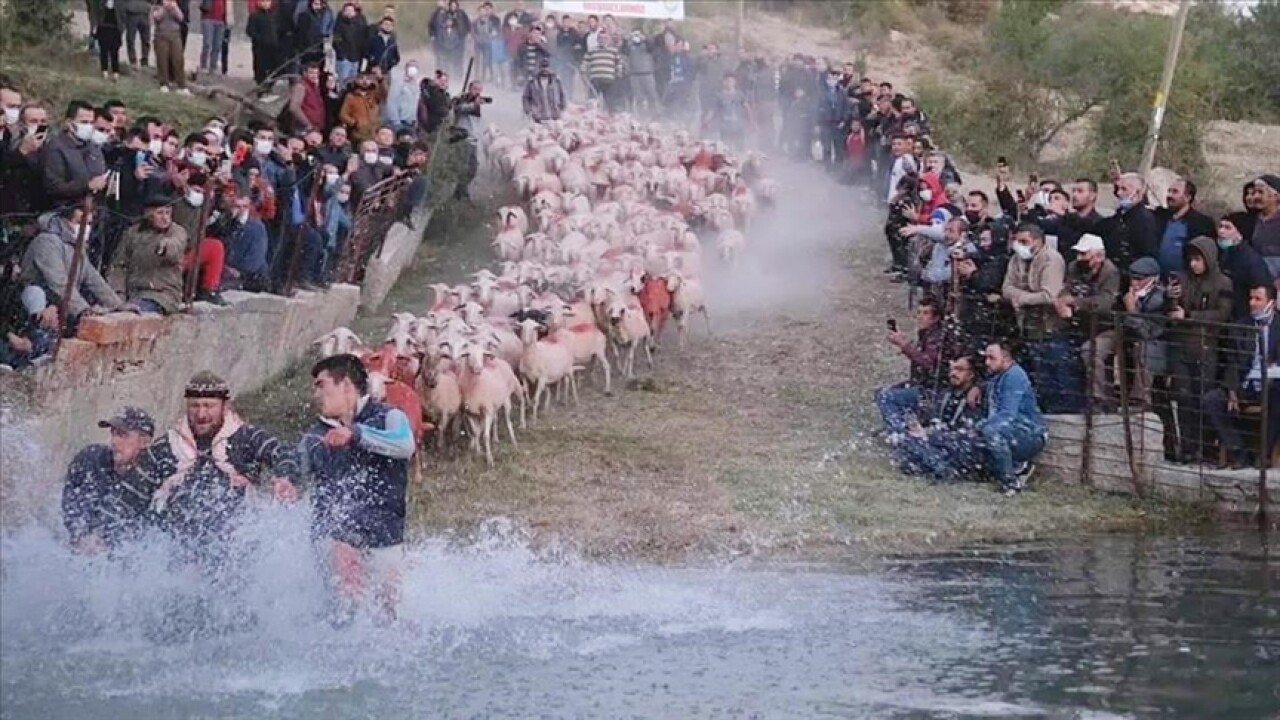 Burdur'da 750 yıllık 'sudan koyun geçirme' geleneği renkli görüntülere sahne oldu