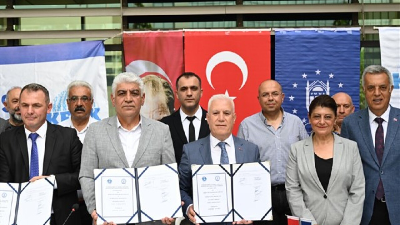 Bursa Büyükşehir Belediye Başkanı Mustafa Bozbey ve Tüm Belediye ve Yerel Yönetim Hizmetleri Emekçileri Sendikası (Tüm Bel-Sen) Genel Başkanı Erdal Bozkurt'un katıldığı törenle 01 Nisan 2024-31 Aralık 2025 tarihlerini kapsayan sözleşme imzalandı.