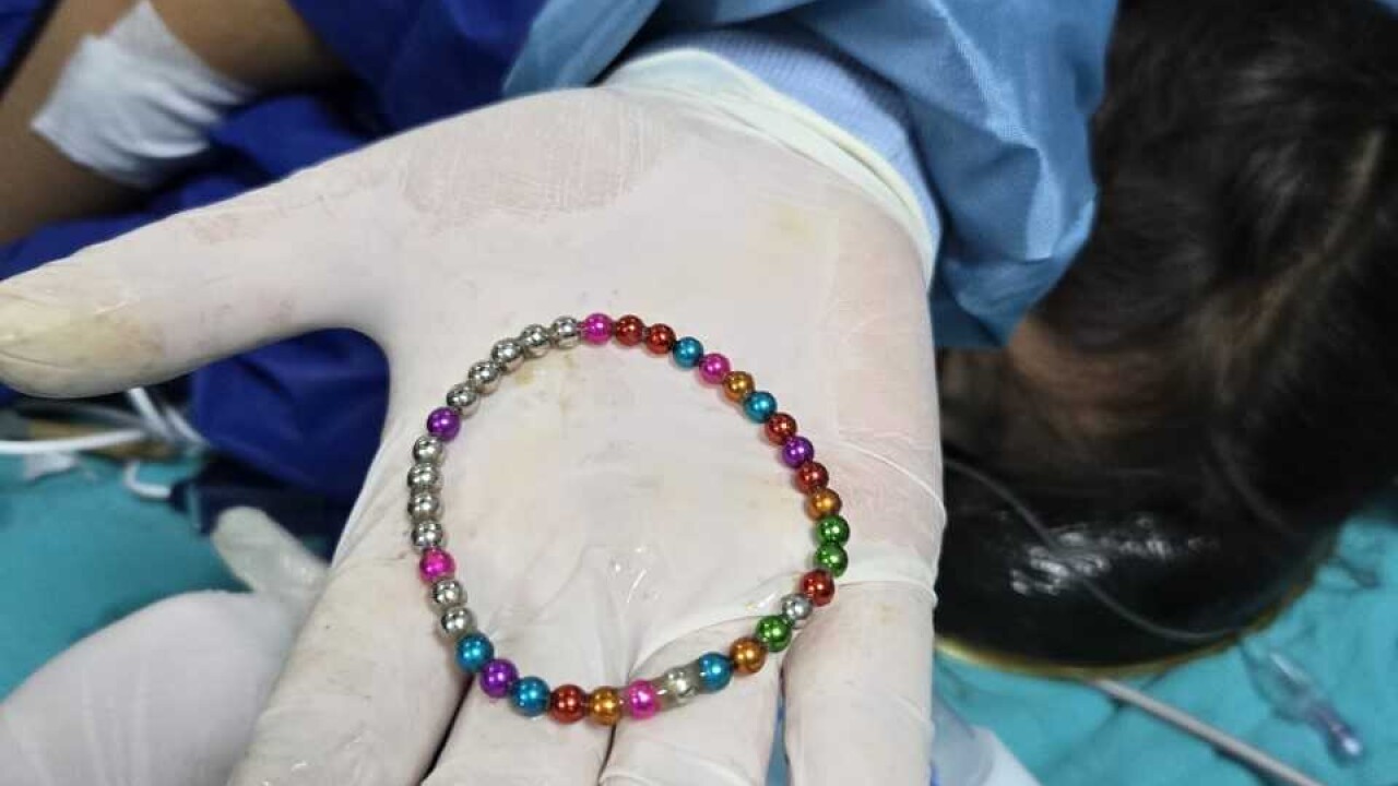 İl Sağlık Müdürlüğünden yapılan açıklamaya göre, 5 yaşındaki kız çocuğu, evde oyun oynadığı mıknatıslı boncuk bilekliği yuttu. Durumu fark eden aile, çocuğuyla birlikte Bursa Yüksek İhtisas Eğitim ve Araştırma Hastanesine başvurdu.