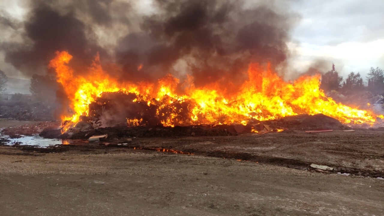 Kısa sürede büyüyen yangın nedeniyle ilçe merkezi dumanla kaplanırken, ihbar üzerine olay yerine itfaiye ve belediye ekipleri sevk edildi.