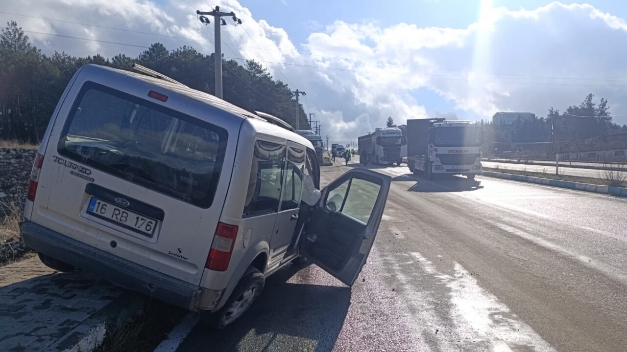 Osman Yanık'ın (65) kullandığı 16 RB 176 plakalı hafif ticari araç, Orhaneli-Harmancık kara yolun Osman U. (55) idaresindeki 16 BLM 519 plakalı tırla çarpıştı. Hafif ticari araç, çarpışmanın etkisiyle kaldırıma savruldu.