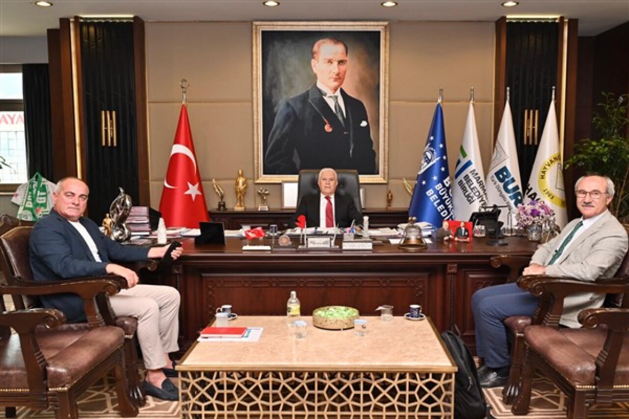 Bandırma Onyedi Eylül Üniversitesi Denizcilik Fakültesi Öğretim üyesi Prof. Dr. Mustafa Sarı, Bursa Büyükşehir Belediye Başkanı Mustafa Bozbey’i makamında ziyaret etti.