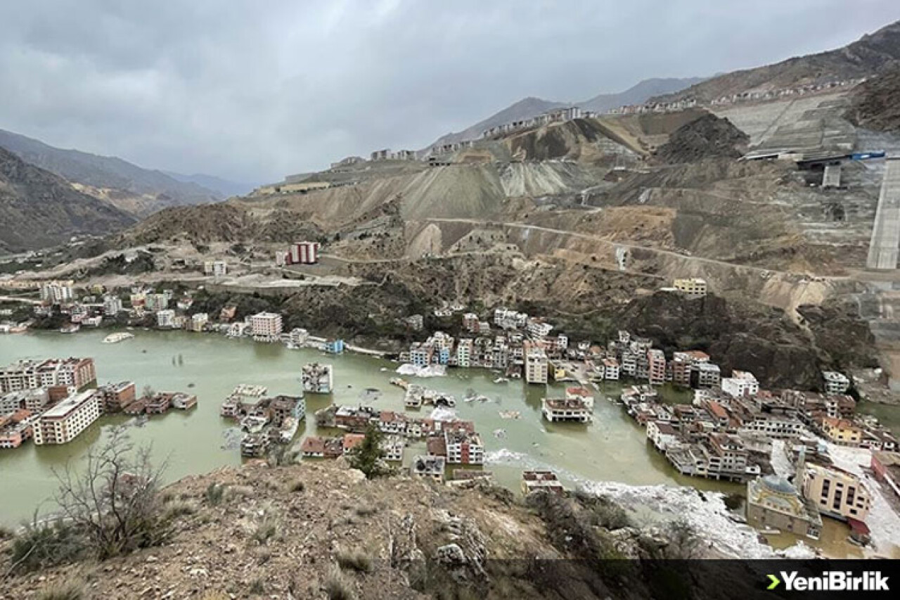 Artvin'de, Çoruh Nehri üzerinde inşa edilen Yusufeli Barajı ve Hidroelektrik Santrali'nde (HES) su seviyesinin artmasıyla eski ilçe merkezine girişe izin verilmiyor.