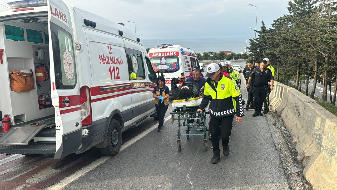 Bu sırada kazayı gören bölgedeki trafik polisleri, sağlık personeli gelene kadar yaralanan sürücüyle ilgilendi.