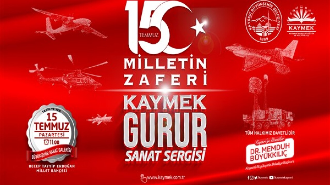 Kayseri Büyükşehir Belediyesi bünyesinde faaliyetlerini yürüten KAYMEK A.Ş. aziz milletin 15 Temmuz 2016’da verdiği onurlu mücadeleyi ve karanlığı aydınlığa çıkaran şanlı zaferi sanatla yansıtacak. KAYMEK, millî birlik duygusunu ve mücadele ruhunu diri tutmak, şehit ve gazileri yâd etmek, demokrasi zaferinin önemini vurgulamak amacıyla ‘Milletin Zaferi’ temasıyla sanat sergisi düzenleyecek.