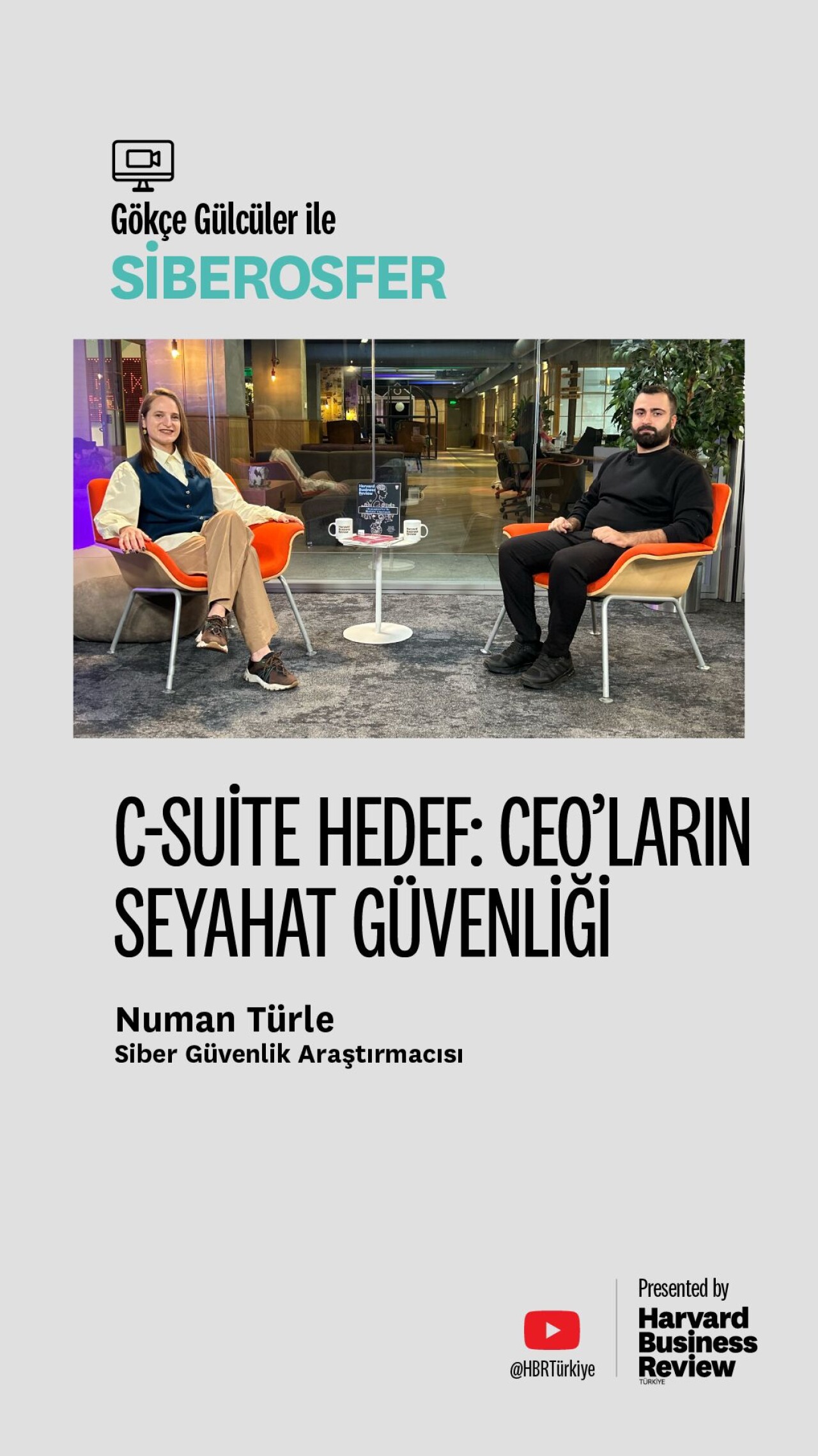 HBR Türkiye stüdyolarında Gökçe Gülcüler'in moderatörlüğünde gerçekleşen Siberfoser'in yeni bölüm konuğu Siber Güvenlik Araştırmacısı Numan Türle oldu. Programda, C-Suite düzeyindeki liderlerin siber güvenli seyahat etmelerinin hem onların bireysel güvenlikleri hem de şirketin devamlılığı için kritik bir öneme sahip olduğunun altı çizilirken, seyahat sırasında karşı karşıya kalınabilecek siber tehditler değerlendirildi.