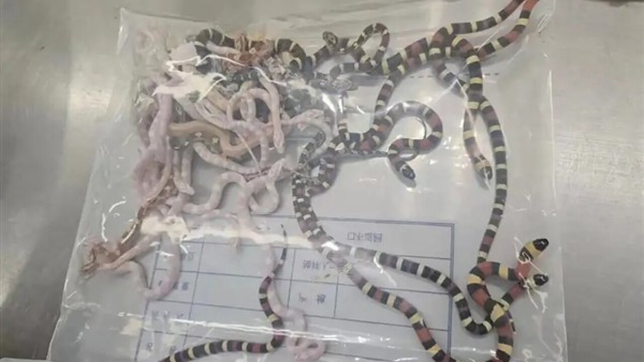 Çin Devlet Gümrük Dairesi tarafından verilen bilgiye göre, aralarında Teksas karayılanı, süt yılanı ve mısır yılanı da bulunan beş farklı türden 104 adet sürüngene el konuldu.
