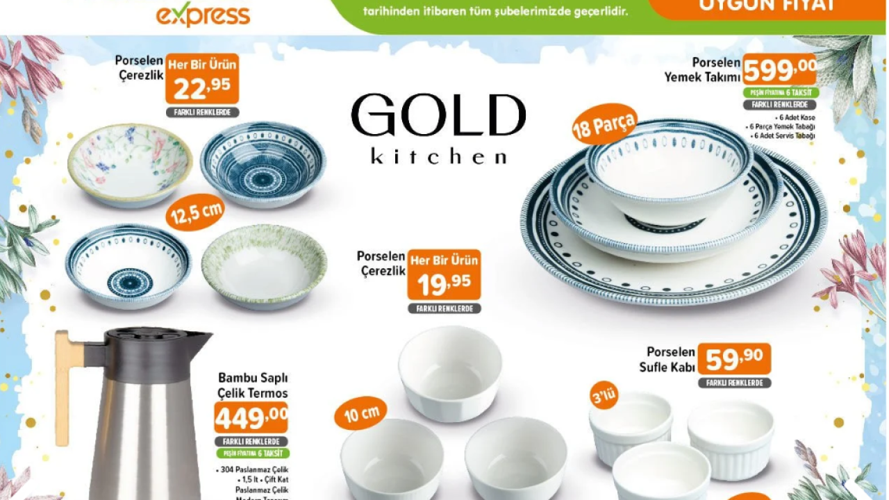 Bu haftanın öne çıkan indirimli ürünlerinden biri, 18 parçadan oluşan porselen yemek takımı. Sadece 599 TL’den satışa sunulan bu set, şık sofralar hazırlamak isteyenler için ideal bir seçim. Bunun yanı sıra, porselen çerezlikler de 19,95 TL gibi uygun bir fiyattan raflarda yerini alacak. Bu küçük fakat zarif detaylar, hem günlük kullanım hem de misafir ağırlama için şık alternatifler sunuyor.
