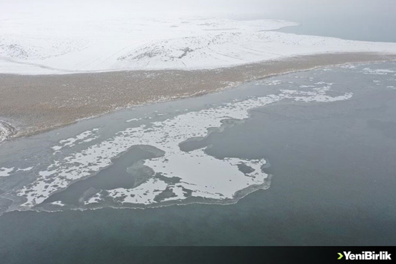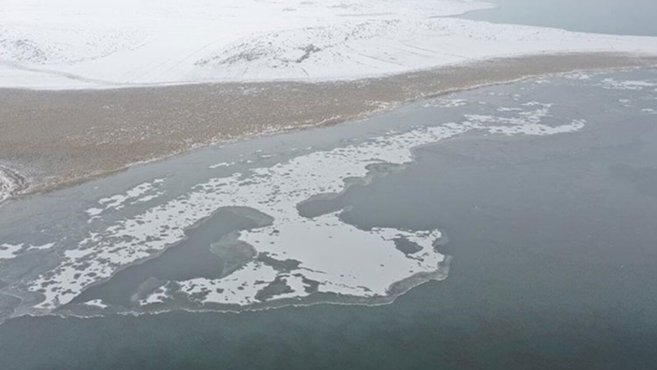 Kar yağışı ve soğuk havanın etkisiyle Kars-Ardahan sınırı arasında yer alan ve Doğu Anadolu Bölgesi'nde Van Gölü'nden sonra ikinci büyük göl olan Çıldır Gölü'nün kenar kısımları dondu.
