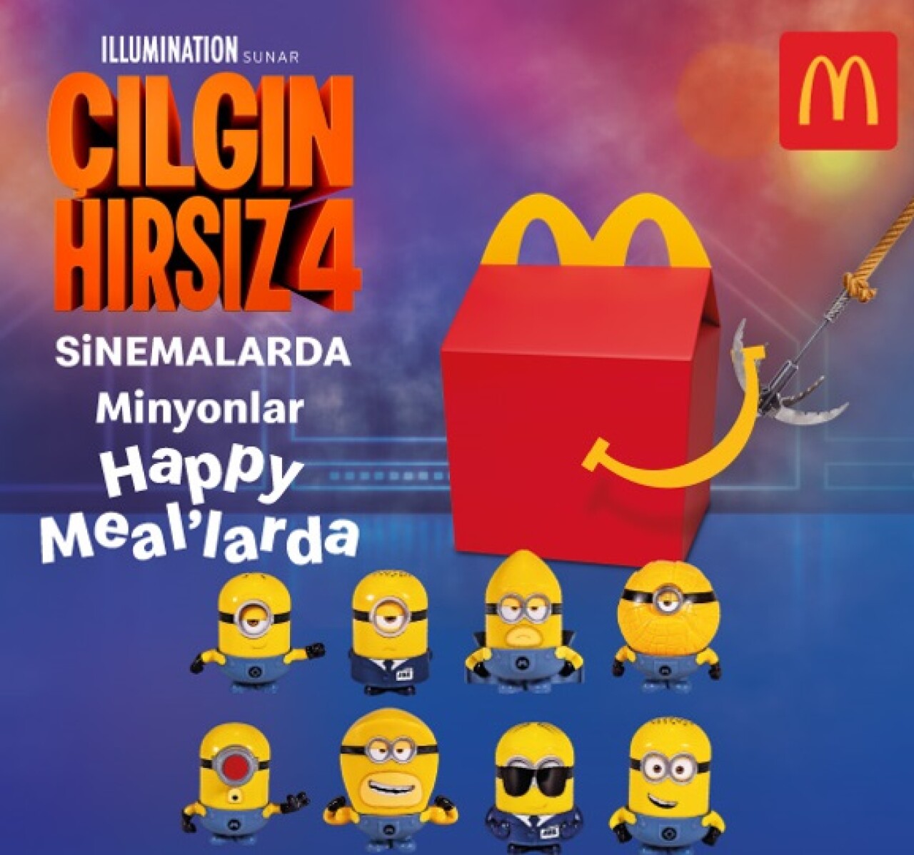 McDonald’s Türkiye, Çılgın Hırsız 4 filmiyle Happy Meal menülerine yeni bir heyecan katıyor. Filmin vizyona girmesiyle birlikte Minyonlar’a özel hazırlanan Muzlu Sundae tüm McDonald's restoranlarında satışa sunulmaya başlandı. Ayrıca Temmuz ayının 2. haftasından itibaren "Çılgın Hırsız 4" filminin Minyon karakterlerini tasvir eden özel oyuncaklar da Happy Meal menülerinde yerlerini alacak. Bu sayede çocuklar McDonald's lezzetleri ve Minyon oyuncaklarıyla filmin heyecanını evlerine taşıyabilecekler.