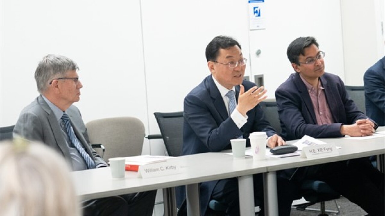 Büyükelçi Xie Feng, 19 Nisan’da Harvard Üniversitesi Fairbank Çin Araştırma Merkezi’ni ziyaret ederek akademisyenlerle fikir alışverişinde bulundu.