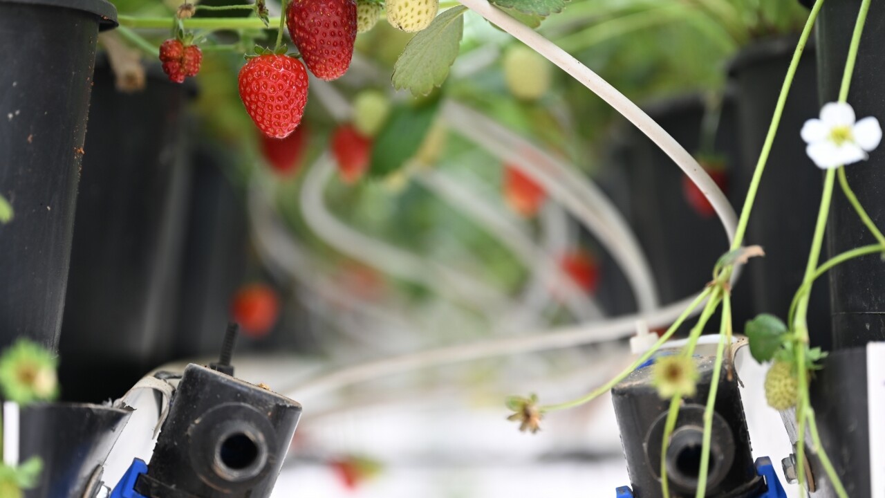Gaziantep Büyükşehir Belediyesine ait katı atık tesisinde elektrik üreten motorlarda ortaya çıkan sıcaklık çilek serasını ısıtıyor.