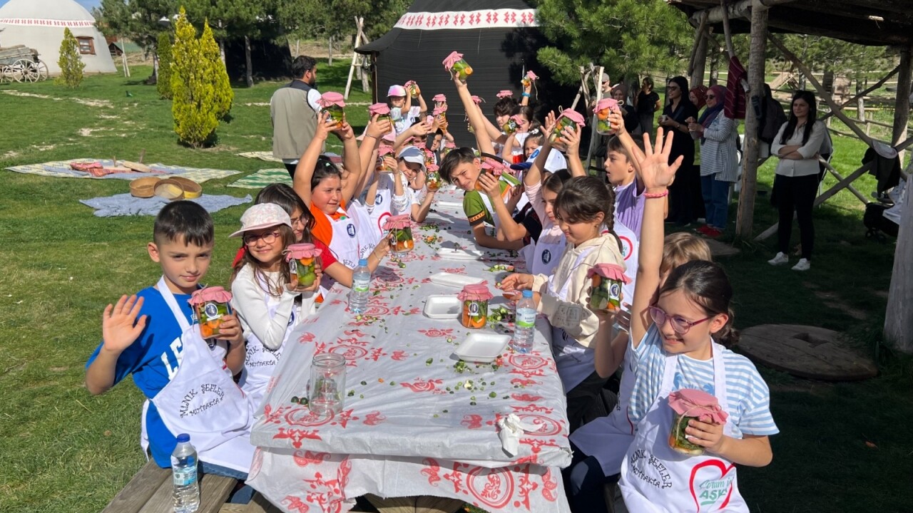 Çorum Belediyesi Gençlik Obası'nda düzenlenen etkinlikte çocuklara uygulamalı turşu kurma ve sebze kurutma eğitimi verildi.