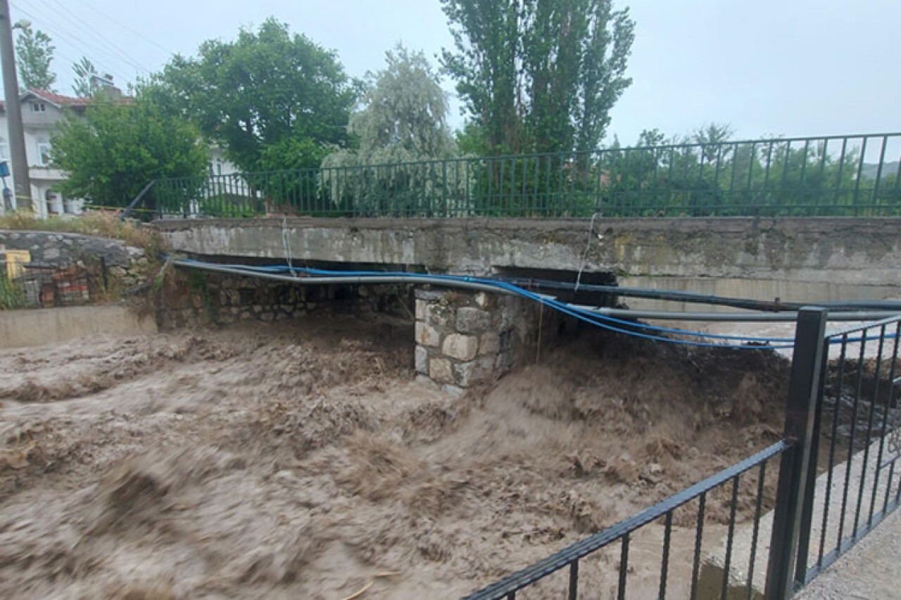 Özellikle yüksek kesimlerde etkili olan sağanak nedeniyle ilçe merkezinden geçen Yazır Deresi'nin debisi yükseldi. Derenin debisinin yükselmesiyle birlikte dere kenarındaki bazı sokaklarda su birikintileri oluştu.
