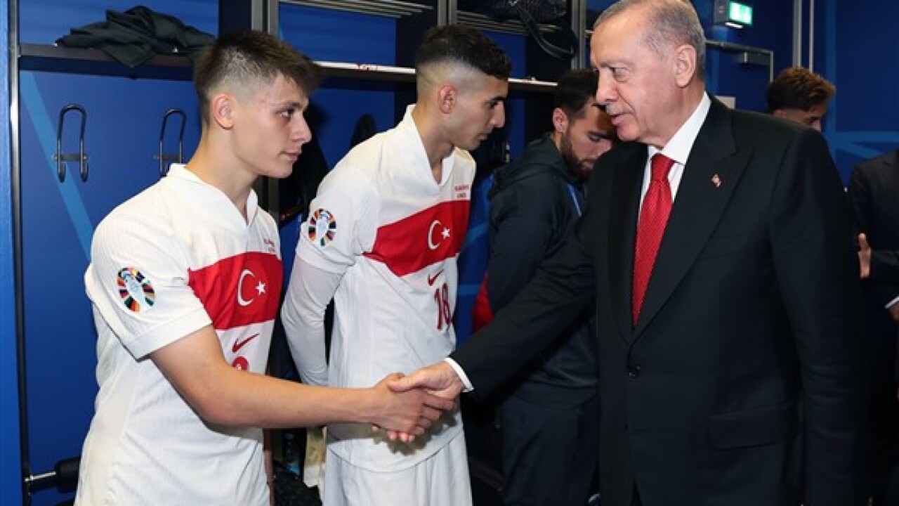 Cumhurbaşkanı Erdoğan, çeyrek final maçının ardından A Milli Futbol Takımı’nı soyunma odasında ziyaret etti.