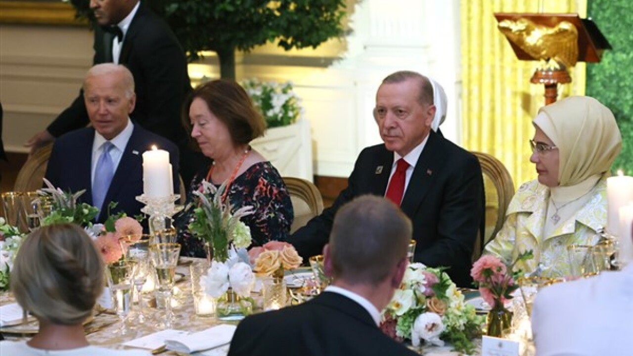 Cumhurbaşkanı Recep Tayyip Erdoğan ve eşi Emine Erdoğan, ABD Başkanı Joe Biden'ın devlet ve hükümet başkanları ile eşleri onuruna verdiği resmi akşam yemeğine katıldı.