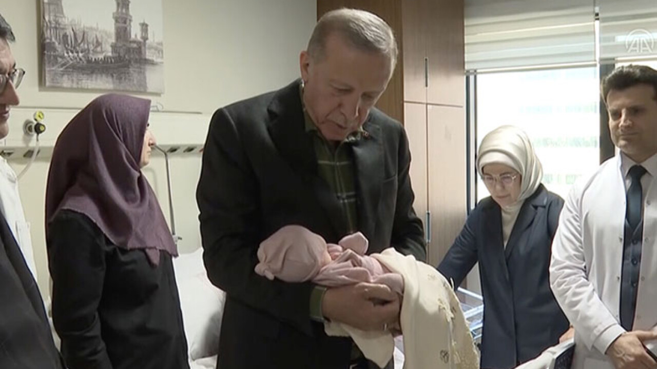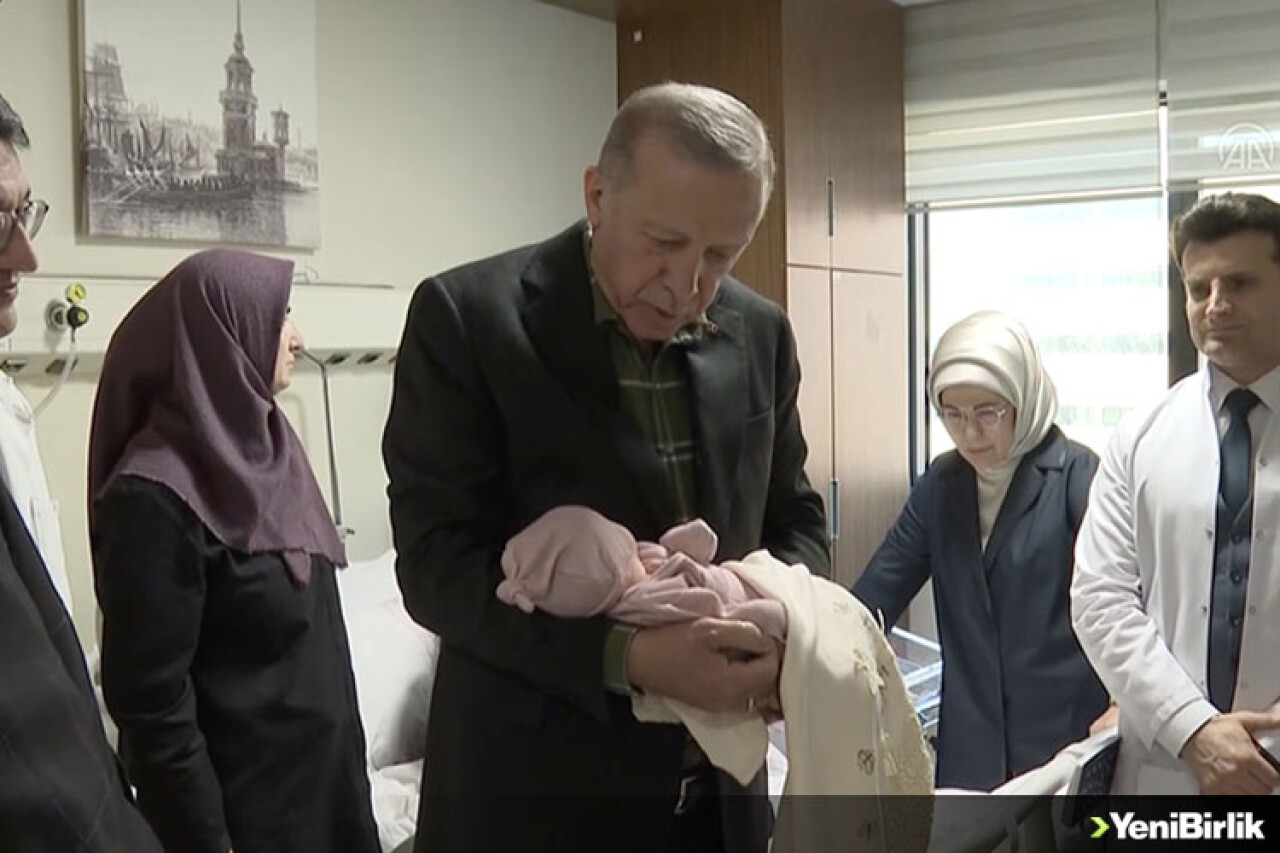 Bunun üzerine bebeğin kulağına ezan okuyan Cumhurbaşkanı Erdoğan, "Ayşe Betül" ismini üç kez tekrarladı.