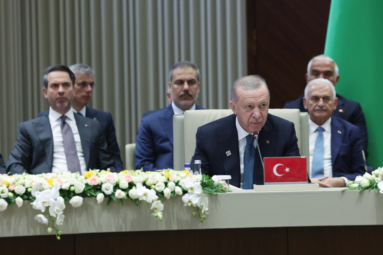 Azerbaycan'ın şehitler vererek elde ettiği tarihi kazanımların bir barış anlaşması imzalanması suretiyle masada da perçinlenmesini ümit ve temenni ediyoruz. KKTC'nin teşkilatımızın bugünkü zirvesinde onur konuğu olarak yer alması dayanışma irademizin tezahürüdür. Kendilerinin yakın zamanda tam üye olarak yer almasını bekliyoruz. Kıbrıs'ta adil çözüm için Türk dünyasına sorumluluk düşüyor. Ukrayna'da da kalıcı ve adil bir barışı destekliyoruz.