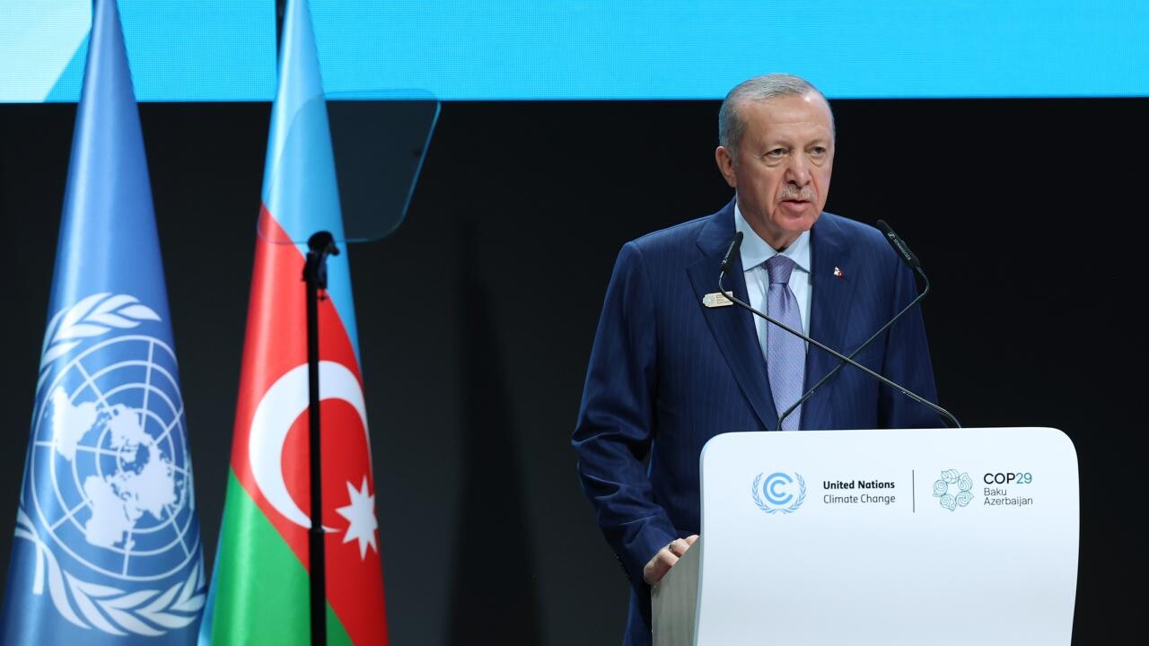 Böyle anlamlı bir buluşmada, gerçekten iklim krizinin menfi etkilerinin en yoğun hissedildiği ülkeler arasındayız. 2053 yılı için net sıfır emisyona ulaşma ve yeşil kalkınma vizyonumuz ekseninde kilit sektörlerimizi dönüştürüyoruz. Yeşil finans stratejisini uygulama ve ulusal yeşil taksonomi oluşturma gayretlerimiz devam ediyor. Emisyon ticaret sistemini de ihtiva eden İklim Kanunumuzu çok yakında Meclisimize sunacağız. COP29 öncesinde 2 yıllık şeffaflık raporumuzu ve uzun dönemli iklim stratejisi yazmanlığa ilettik.