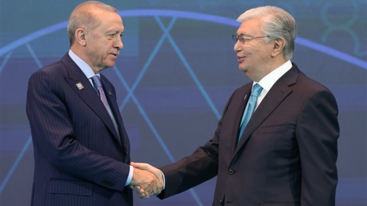 Cumhurbaşkanı Recep Tayyip Erdoğan, Astana’da Şanghay İşbirliği Örgütü 24'üncü Devlet Başkanları Zirvesi'ne katılmak üzere geldiği Bağımsızlık Sarayı‘nda Kazakistan Cumhurbaşkanı Kasım Cömert Tokayev tarafından karşılandı.