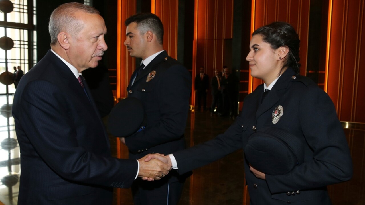 Cumhurbaşkanlığı Külliyesi girişinde Cumhurbaşkanlığı Koruma Başkanı Ramazan Bal tarafından karşılanan Cumhurbaşkanı Erdoğan, görevli polislerle tek tek tokalaşarak 10 Nisan Polis Haftası’nı kutladı. Erdoğan, polislerle hatıra fotoğrafı da çektirdi.