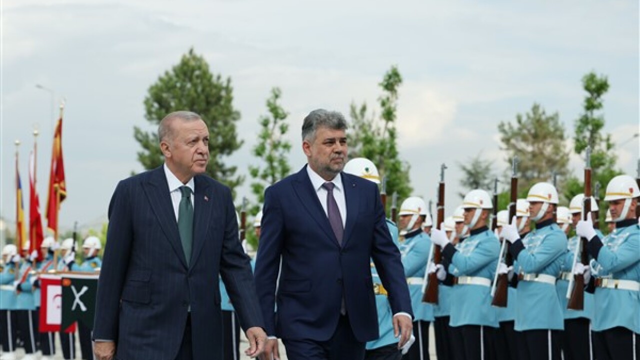 Türkiye Cumhuriyeti Cumhurbaşkanı Recep Tayyip Erdoğan, Romanya Başbakanı Marcel Ciolacu'yu resmi törenle karşıladı.